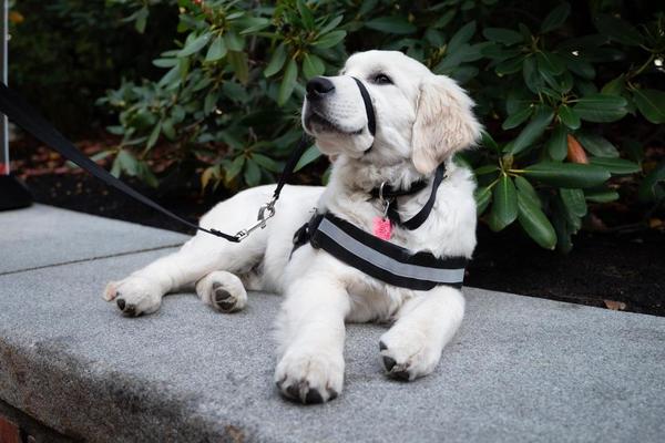 Ryder, a 4-month-old golden retriever puppy, can be seen trotting alongside Northeastern University Police Department officers since his official training as a wellness dog began during the fall 2024 semester.